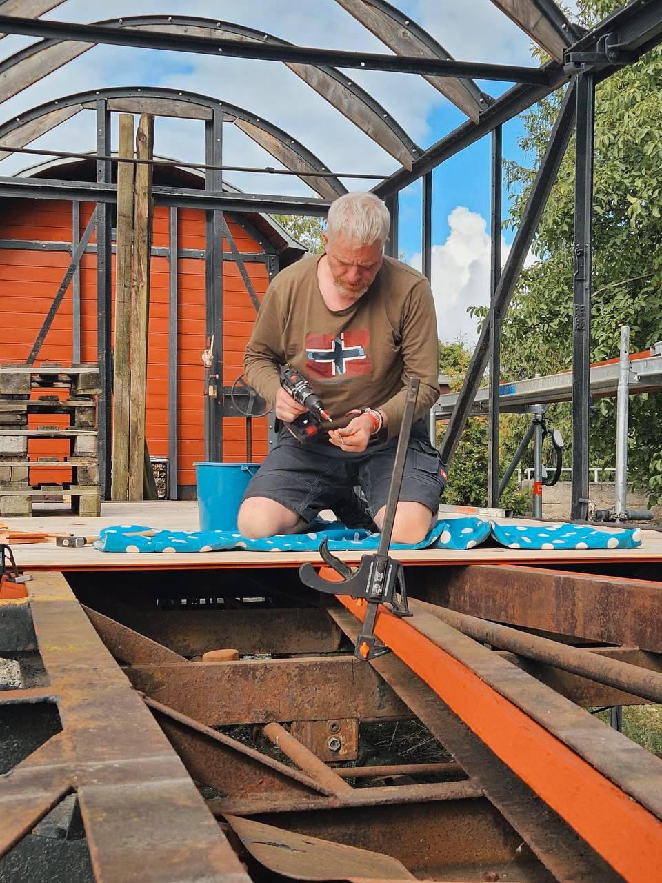 In den vergangenen Wochen hat sich in unserem Waggon richtig viel getan. Nachdem die Bodenbretter sorgfältig zugeschnitten wurden, hat unser lieber René sie fachmännisch verlegt und in frischem Anstrich erstrahlen lassen. Auch die Seitenwände haben inzwischen Gestalt angenommen: zugeschnitten, zweimal gestrichen und anschließend eingebaut, verleihen sie dem Raum nun eine warme und einladende Atmosphäre.